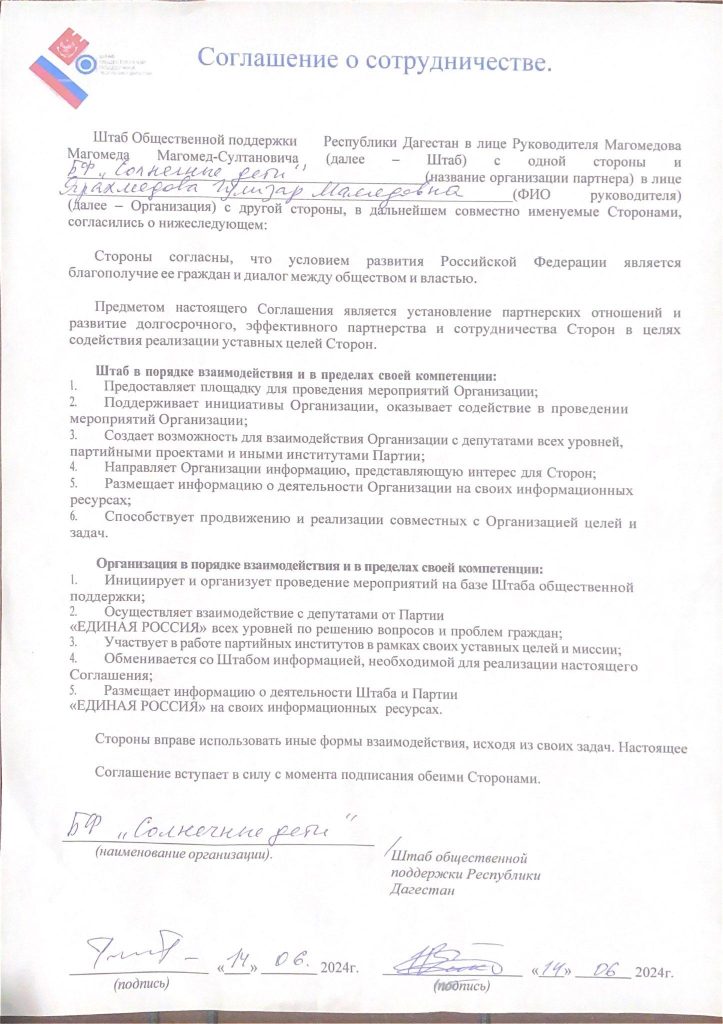 Соглашение о сотрудничестве Штаб общественной поддержки Республики Дагестан 29.06.2024 События Навигация по записям Предыдущий Предыдущая запись: Арт-терапевтическая игра «Планета Цверис»Следующий Следующая запись: Забег Atletica